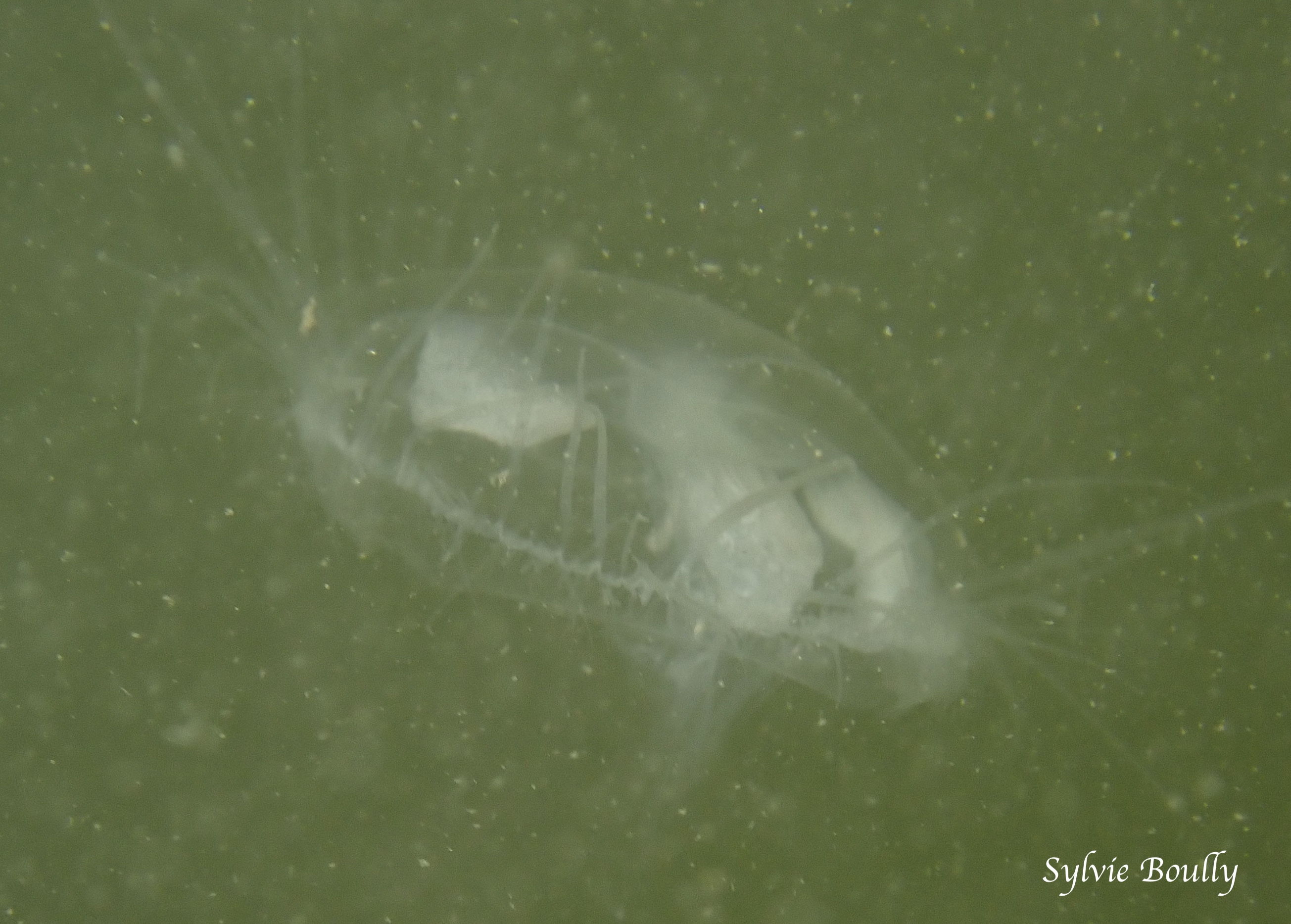 Sous un soleil de plomb et une eau rafraichissante à 25°C, Bourg Plongée assuerait l’arrachage des herbiers du parc de Bouvent qui menaçaient “d’étouffer” l’étang et la sécurité des baigneurs.A la demande de Sylvain Jacquemet, ce 18 juin, Alain et moi avons centré cette 1ère matinée d’intervention sur la rampe de mise à l’eau et la zone 3 de baignade avant son ouverture au public le 1er juillet ; les plantes arrachées étaient ainsi récupérées par Sylvain présent sur le bateau de surveillance. Durant 2h30 , 400kg environ de plantes ont pu être soustraites à la zone ciblée.. A la 1ère poignée de longues racines de myriophylles arrachée, le nuage noir créé nous obligeait à poursuivre à l’aveugle. Dans les rares espaces où la visibilité était claire , perchettes, ecrevisses et méduses d’eau douce nous ont accompagnés .