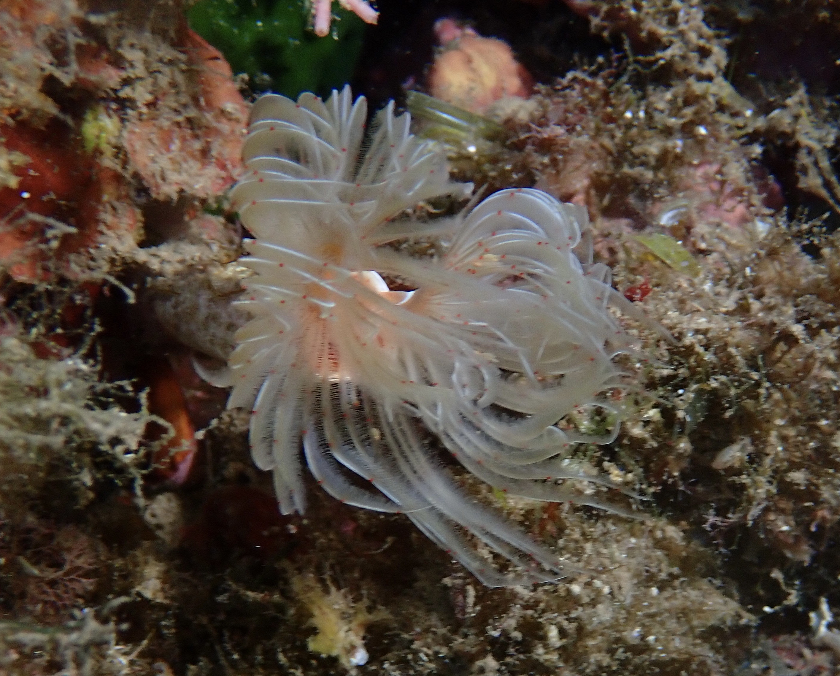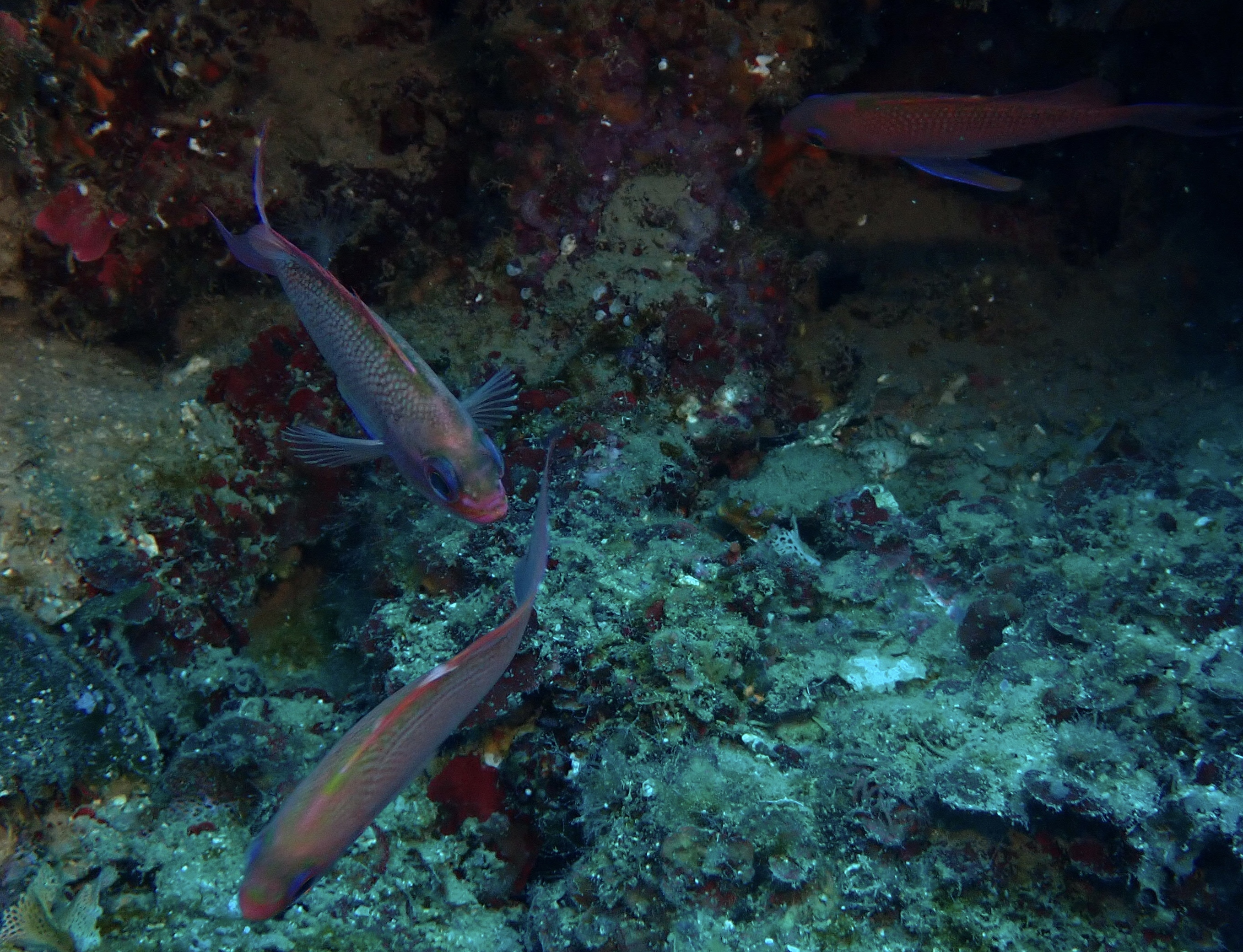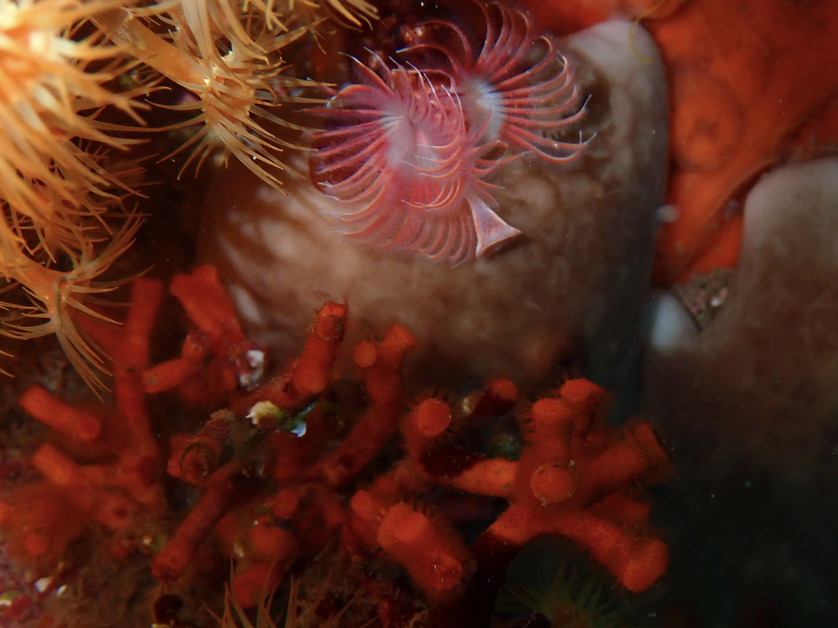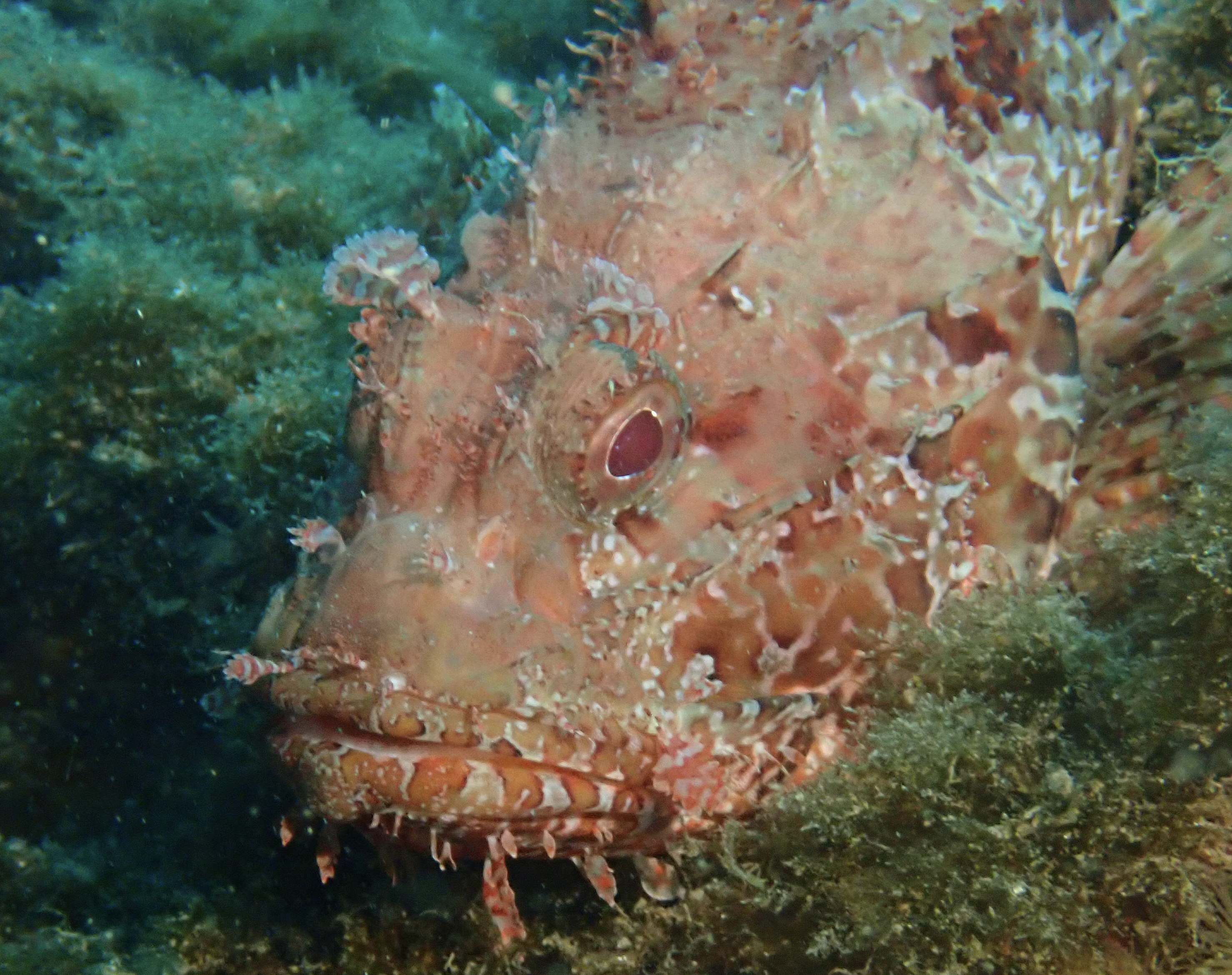Mises à part les inquiétudes des PN2 parasités par les exercices de leur formation ,tout le monde était ravi de découvrir sur ces 5 plongées les sites du Lion de Mer et du Dramont aux rencontres fascinantes : murènes inquiétantes respirant la gueule ouverte, chapons impréssionnants et petites rascasses rouges craintives, mérous nonchalents , seiches dançant en couple , mostelles timides, girelles & tripterygions en parade amoureuse, vers colorés rentrant dans leur tube à notre approche, élégantes et chatoyantes limaces de mer, oursins diadèmes aux longues épines, éponges multicolores aux formes surprenantes , corail de Méditerranée aux fleurs épanouies , mimosas de mer tapissant les surplombs...gorgones blanches, jaunes , pourpres…Autant de merveilles étonnantes qui ont énchanté nos jeunes plongeurs émerveillés...et encadrants ravis.
